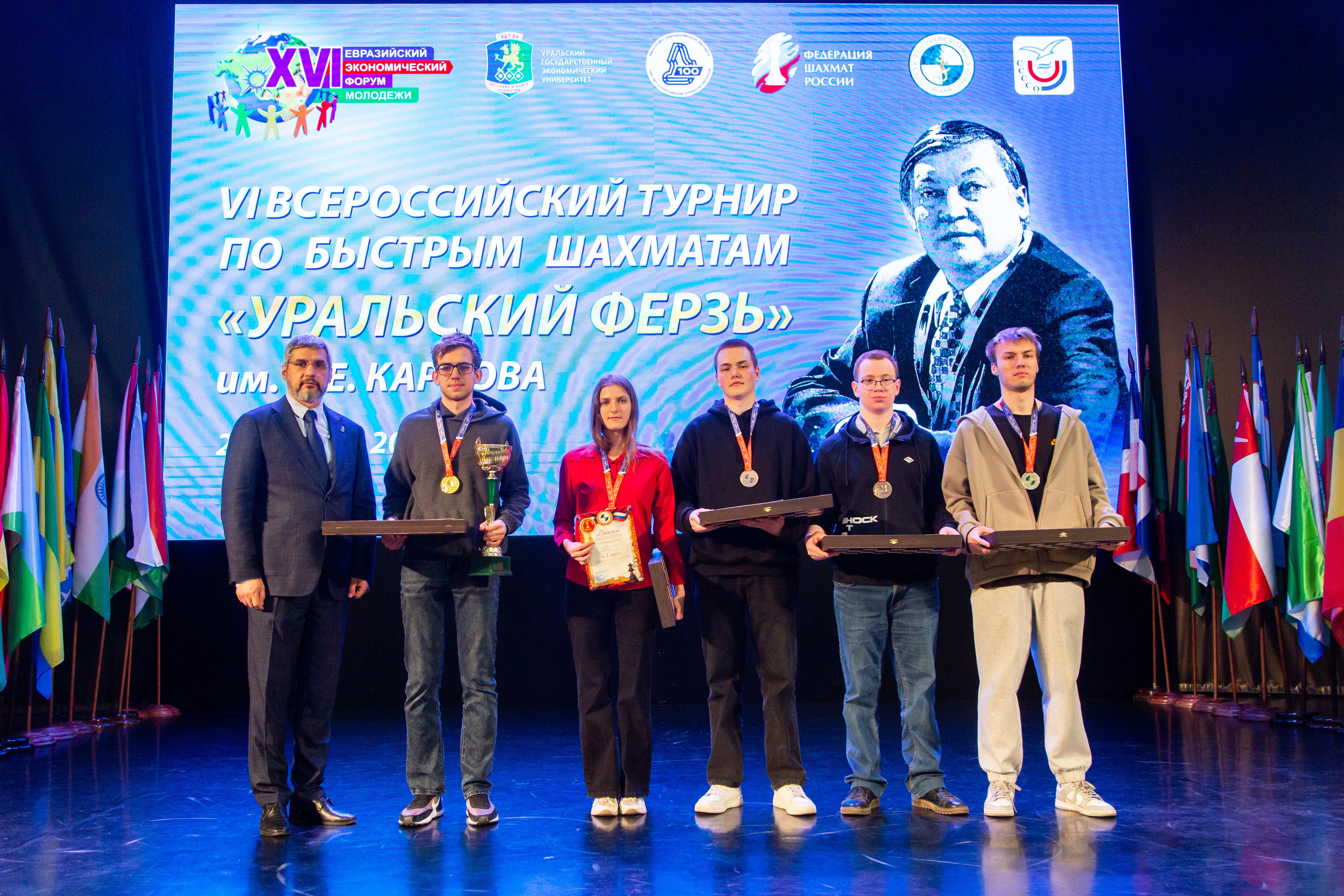 22 апреля в Екатеринбурге прошли Всероссийские соревнования VI турнир «Уральский ферзь» им. А.Е.Карпова по быстрым шахматам среди старших школьников и студентов средних и высших учебных учреждений